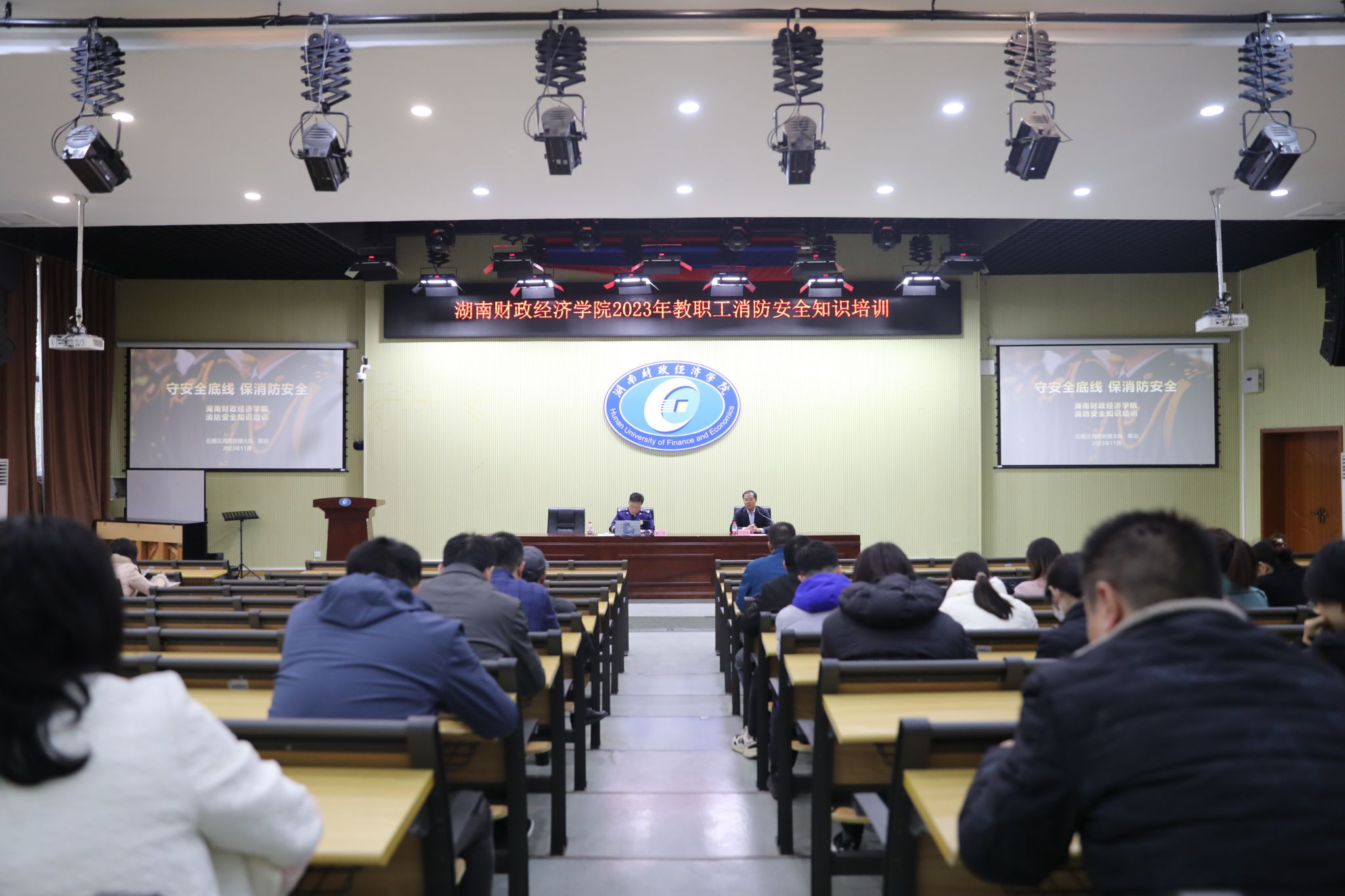 陈冶同志从法律规定、岗位职责、群众需要、现实压力等方面强调了各单位落实消防安全主体责任的重要意义,并以电动摩托车充电引发的众多火灾案例及严重后果为切入点,盘点了近几年全国各高校发生的火灾事故,分析了长沙市2023年火灾数据总体情况,讲解了基本的灭火方法、扑救身边初起火情的技术要点、火场逃生的基本原则等等。并根据学校的实际情况,就学校消防设施的巡检巡查和消防安全隐患整改等工作提出了很好的建议。