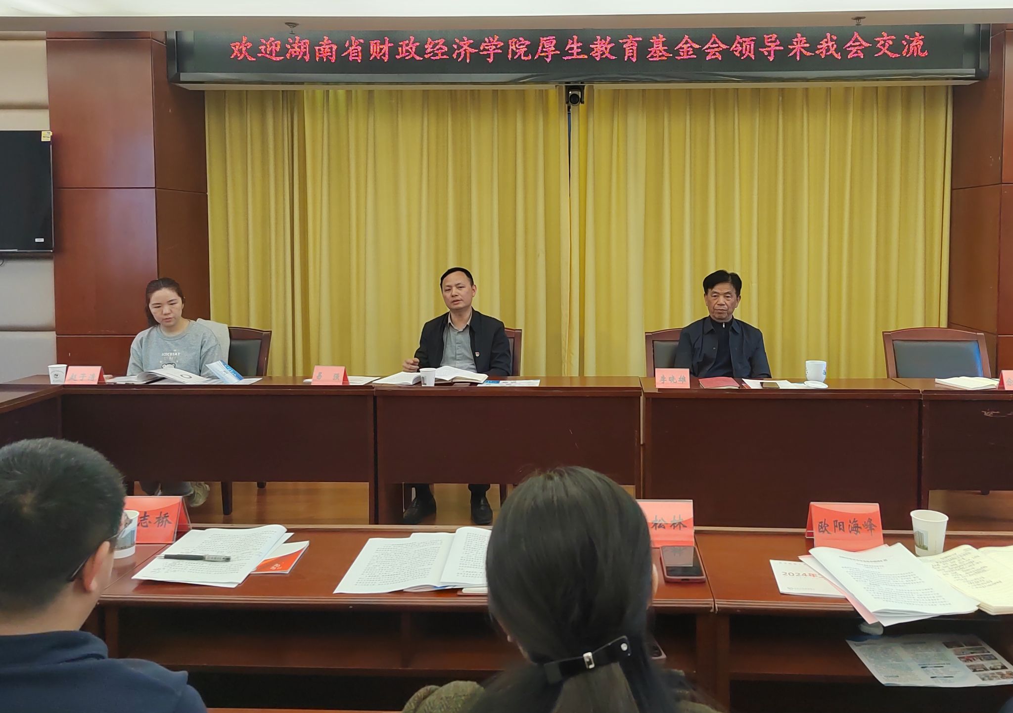 随后,曹松林一行来到岳阳市教育基金会交流学习,就基金会公益项目运作、捐赠工作、财税工作、党建工作、理财管理等方面工作开展深入交流。岳阳市教育基金会前身为1993年成立的岳阳市教师奖励基金会,2016年正式更名。2017年获慈善组织认定及公募资质,连续二次被评为 5A 级社会组织。多年来,基金会开展的“彩虹教室“、“美在田野”助学公益项目,让乡村儿童受益,为师生成长、岳阳教育事业发展提供有力支持 。