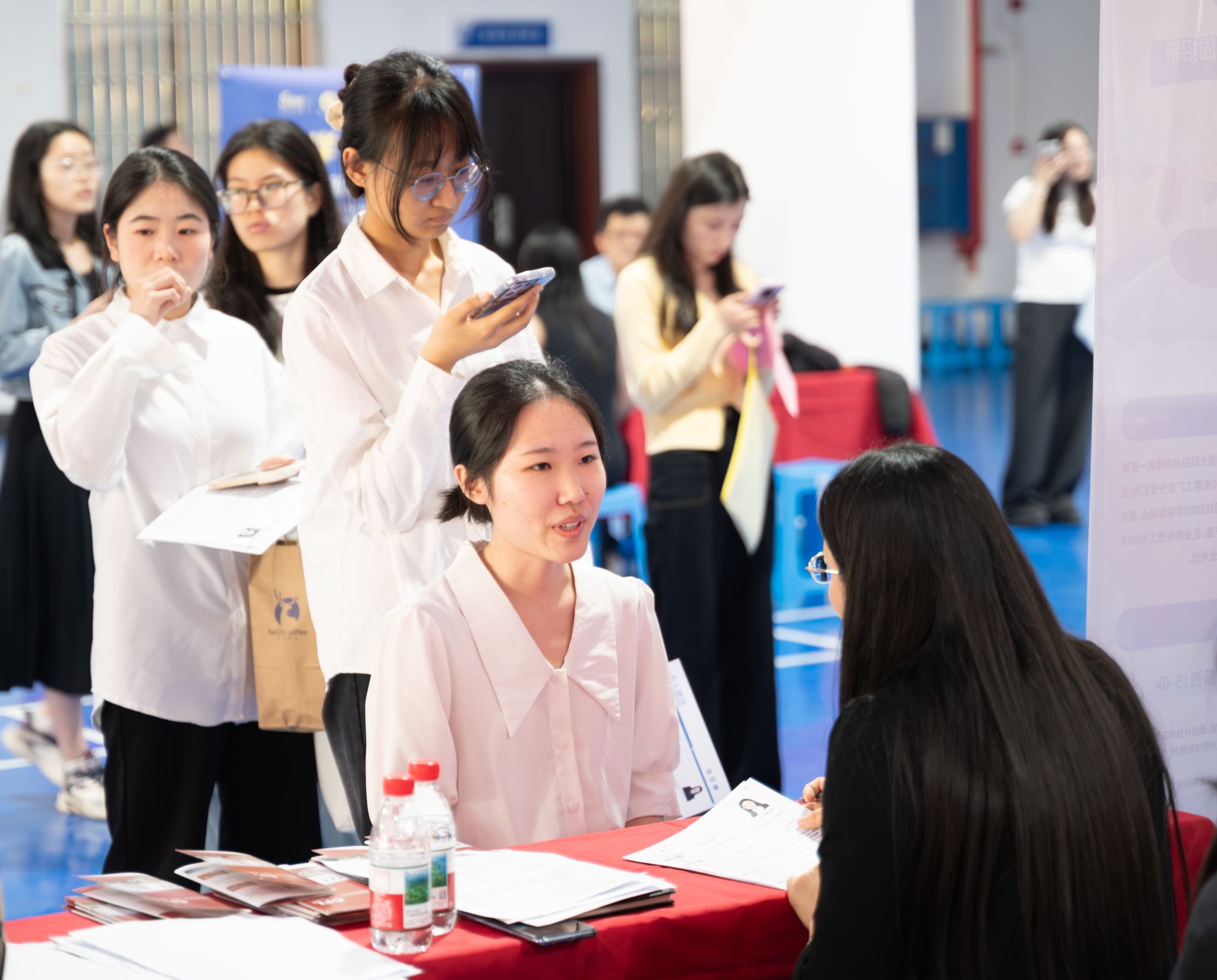 活动现场,用人单位代表精心布置展位,热情推介企业发展前景、岗位需求及薪资福利,耐心解答毕业生关切。世界杯官网1500余名毕业生手持简历,自信穿梭于展位间,主动展示专业能力与个人优势,充分展现湖财学子扎实的专业素养与良好的精神风貌。