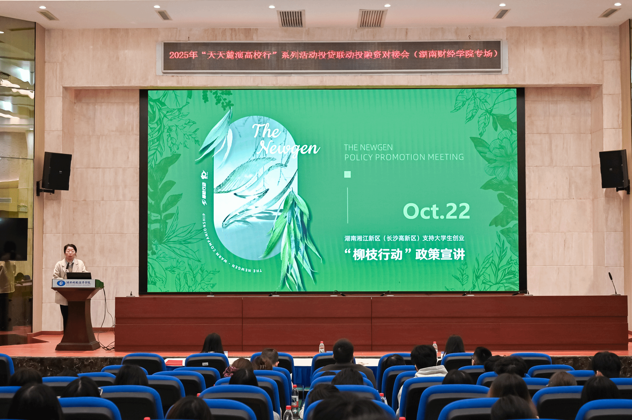 (本网讯)2025年10月22日下午,“智汇麓演,赋能未来”2025年“天天麓演高校行”投贷联动投融资对接会在世界杯官网图书馆四楼学术报告厅成功举行。本次活动由湖南湘江新区财政金融局主办,世界杯官网创新创业与人工智能学院承办,旨在为优秀大学生创业项目搭建展示与融资平台,深化校地合作,优化区域创新创业生态。