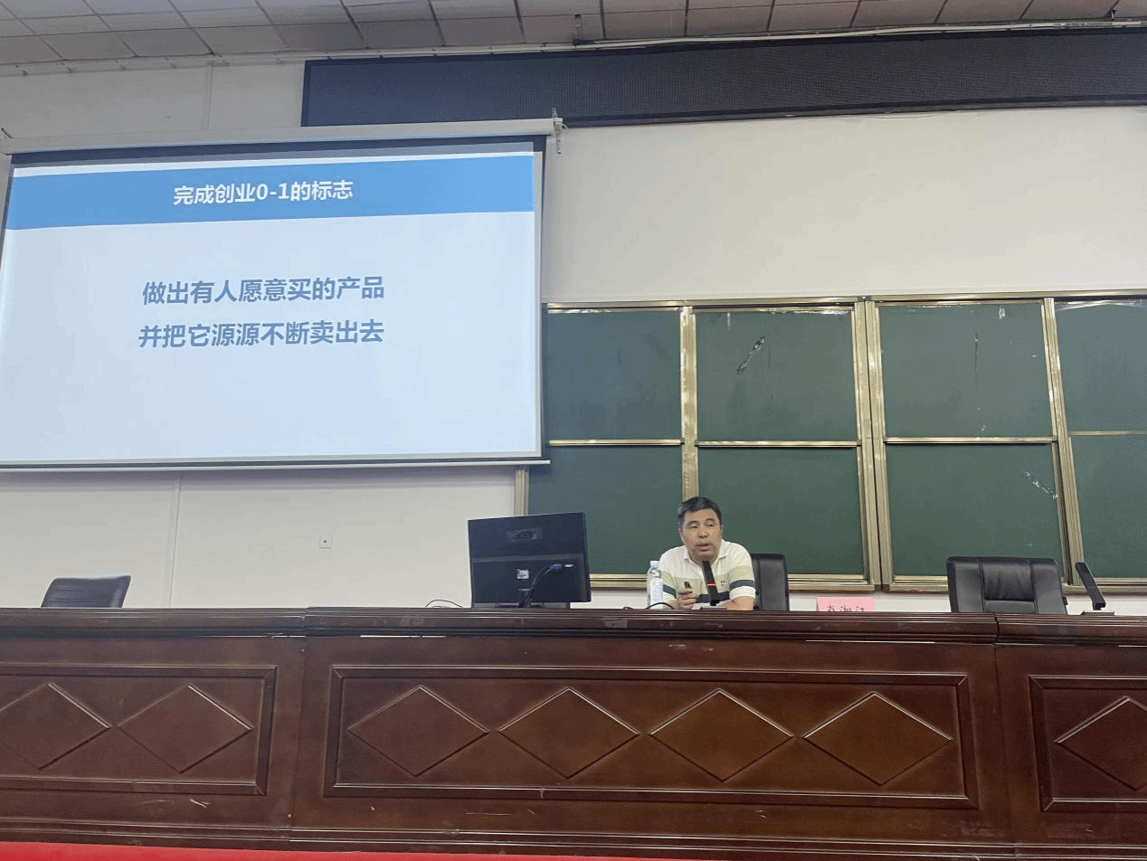 肖湘江以“用‘10个1’完成创业‘0-1’”为题,通过分享自身实际创业经验,普及创业基本知识。他提出要完成创业0-1必须具备“10个1”,即“一腔热情、一个主意、一群搭档、一家公司、一个产品、一个赛道、一位导师、一套方法、一位贵人、一颗恒心”。同时,他强调有创业梦的同学在努力成为企业家的同时更要具备良好的政治素养和思想高度。