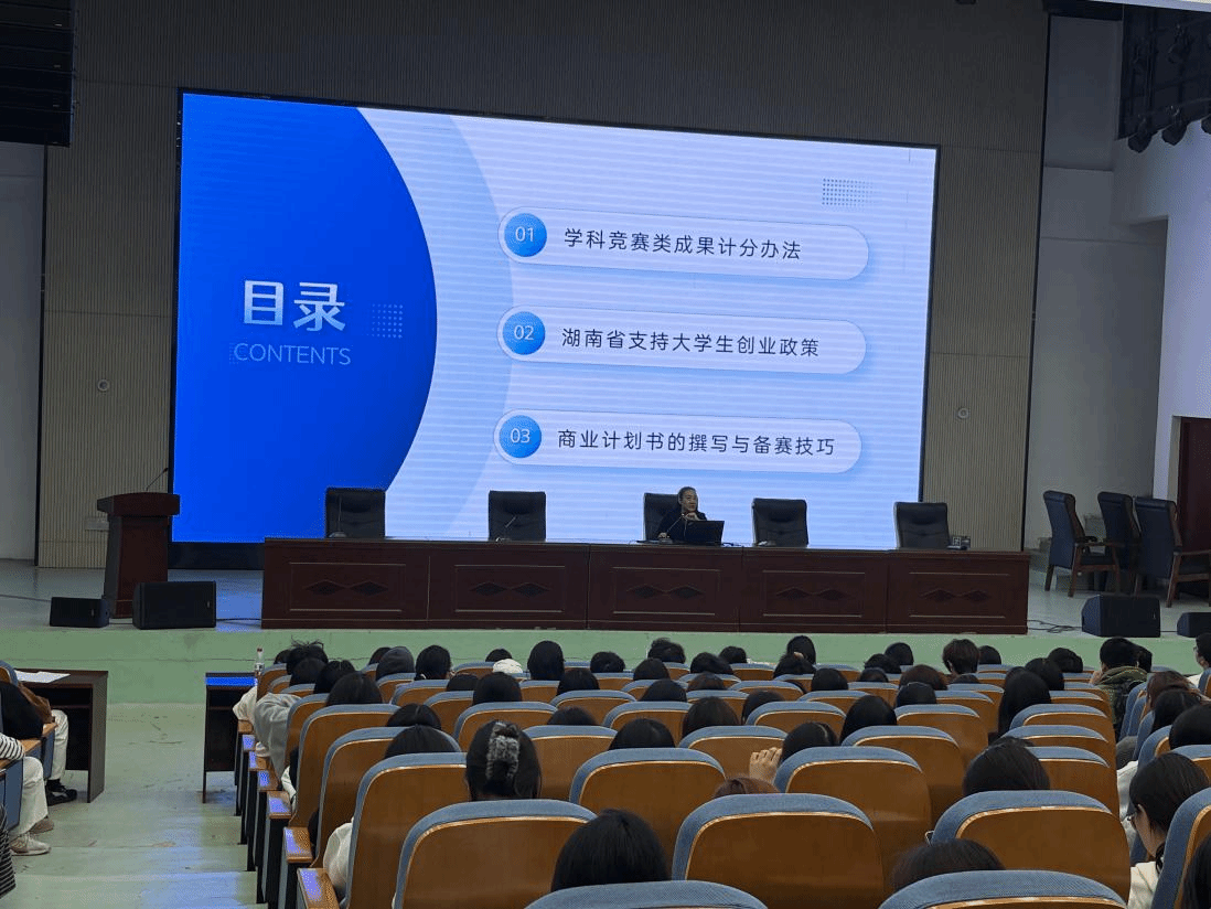 分享会上,周雪以三大核心板块展开深度分享,内容兼具实用性与指导性:一是细致拆解学分竞赛类成果的计分规则与核算方法,为同学们清晰梳理得分逻辑;二是全面解读湖南省针对大学生创业的扶持政策,涵盖资金补贴、场地支持等关键内容;三是系统讲解商业计划书的撰写框架、核心要素及备赛实战技巧,为项目筹备提供具体路径。