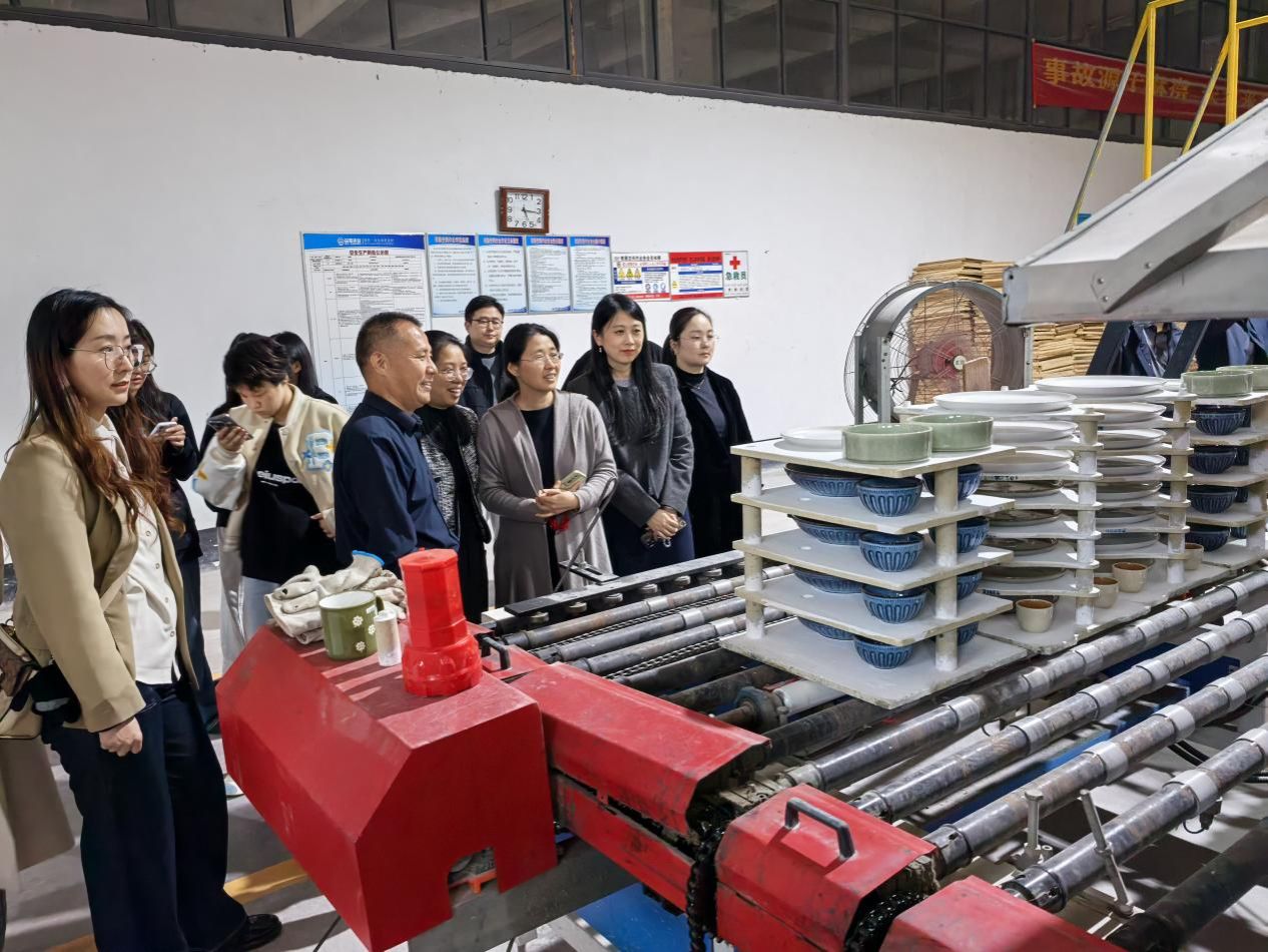 调研期间,团队参访醴陵陶瓷学院展厅、大师工作室及古窑遗址,领略国礼瓷工艺魅力与人才培养成果;走进渌江书院感受人文底蕴后,赴大瓷坊、益嘉瓷业等企业考察生产研发,围绕品牌建设、跨境电商、智能营销等议题交流,明确行业痛点与合作方向。次日,团队在陶瓷博物馆梳理产业发展脉络,领会“匠心传承与创新突破”核心;在陶润会汲取“传统陶瓷+现代生活”文创灵感,为“人工智能+文创”融合提供思路;在非遗柴烧窑厂观摩技艺,体会传承与创新的平衡。