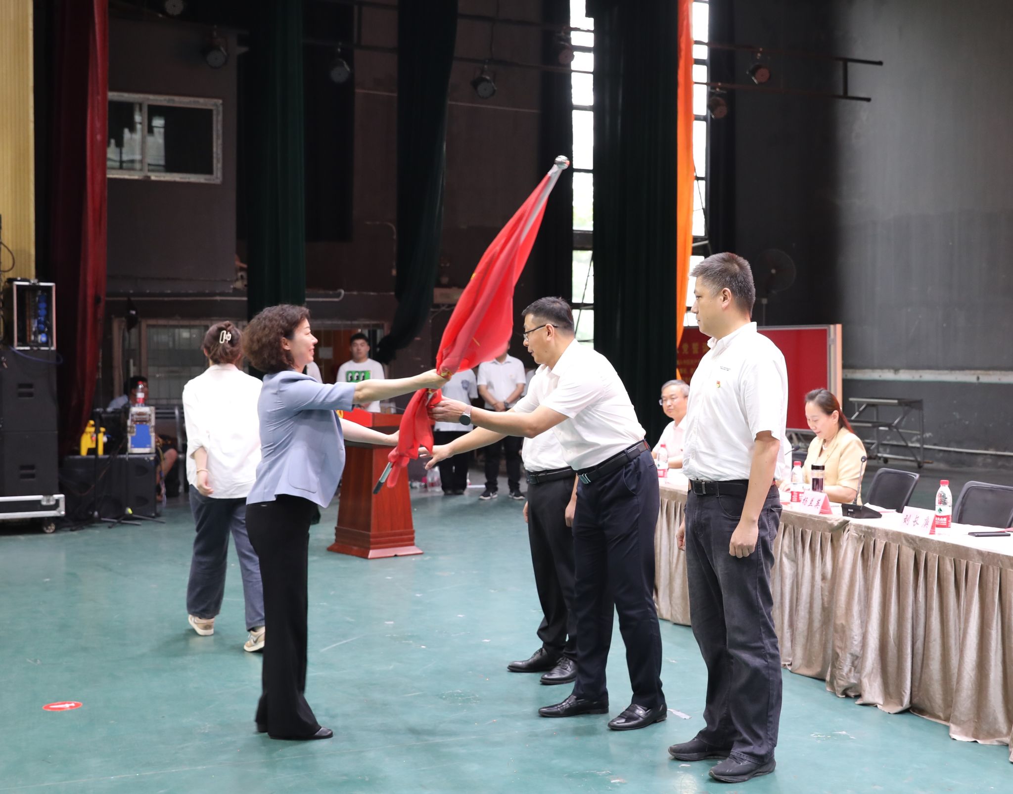杨兰英(左二)为党员先锋队授旗 何妍/摄