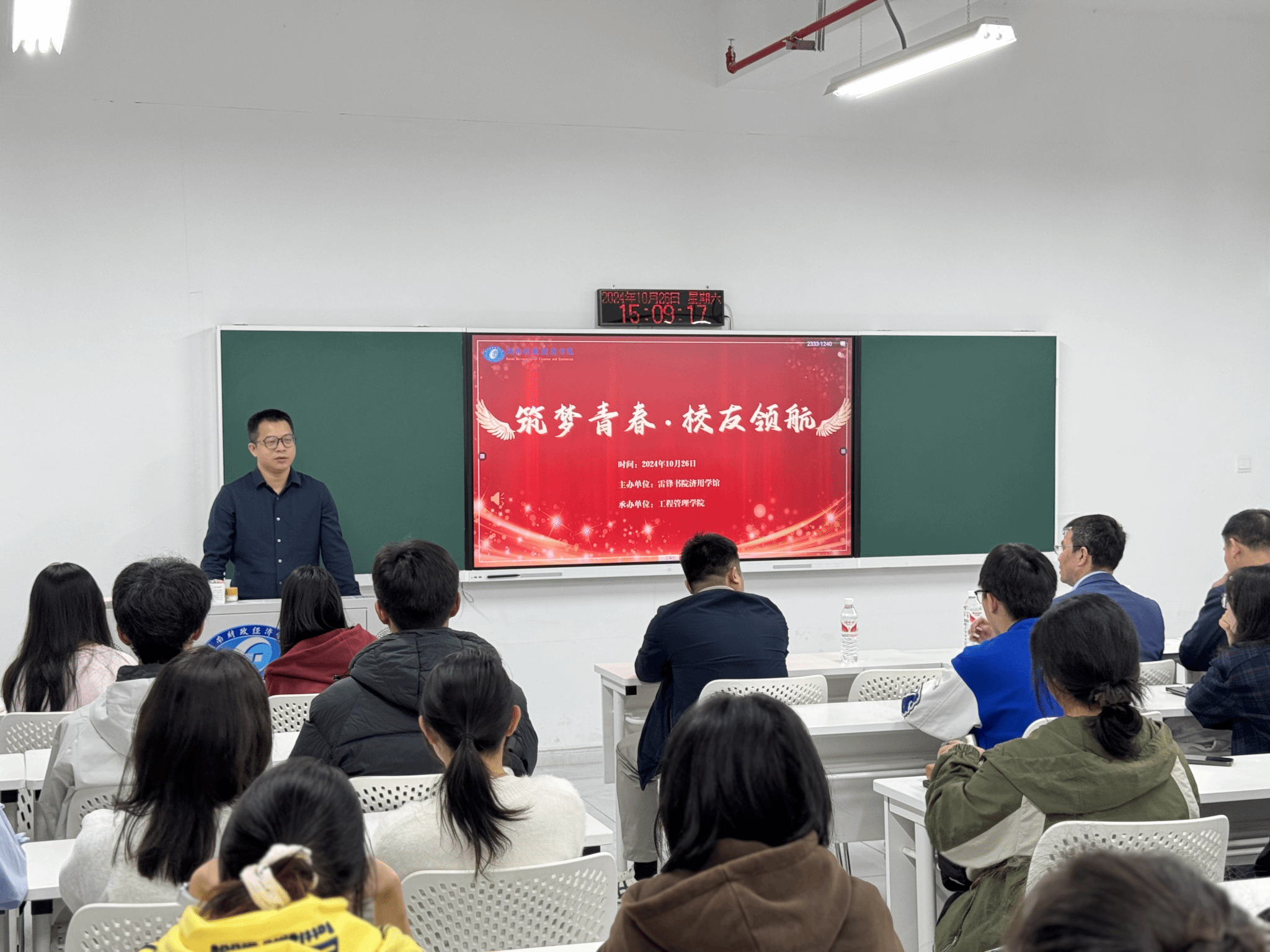 (本网讯)10月26日下午,为充分发挥校友榜样力量,拓宽教育渠道,创新学校协同育人机制,工程管理学院在雷锋书院济用学馆成功举办了“筑梦青春•校友领航”我与校友面对面主题沙龙活动。此次活动作为校友归巢系列活动之一,吸引了济用学馆学生的热情参与。