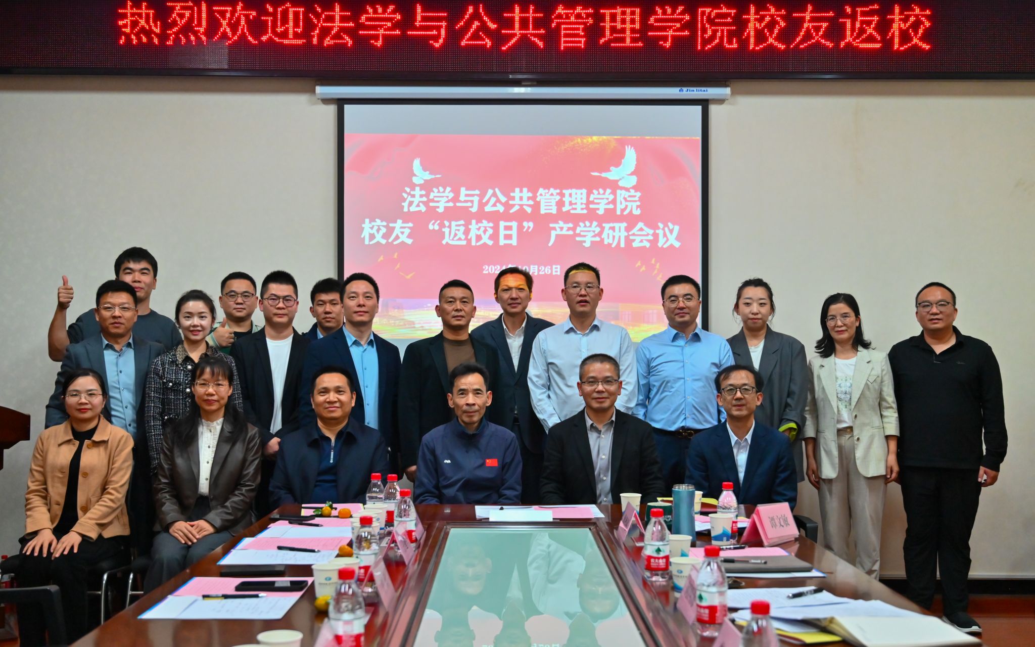 (本网讯)为凝聚校友力量,进一步推动产学研深度融合,助推学院高质量发展,10月26日,法学与公共管理学院于主校区办公楼414-2会议室开展主题为“集聚校友凝力量,开校企合作新局”的产学研高峰论坛暨校友返校日座谈会。学校纪委书记李雪山出席会议,学院领导班子、各系系主任、校友代表等参与本次座谈会。会议由学院党委书记何四海主持。