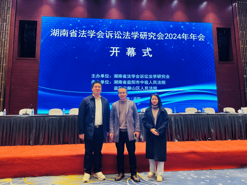 (本网讯)2024年12月21日上午,湖南省法学会诉讼法学研究会2024年年会在益阳市隆重举行。此次会议由湖南省法学会诉讼法学研究会主办,湖南省益阳市中级人民法院、益阳市赫山区人民法院承办。我院党委书记何四海、法学系教师贺英杰、周千荀等应邀出席会议。