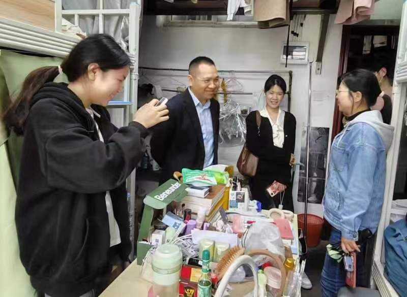 走访过程中,李茂华与同学们进行亲切交谈,督促同学们注意宿舍用电安全和卫生管理,关切询问毕业生去向以及未来打算,了解他们的生活情况,为求职中的毕业生提出针对性指导意见,给即将离别的毕业生带去了温暖和鼓励。同学们在领导和老师们的声声叮嘱中感受到了温暖和关怀,增进了师生感情。