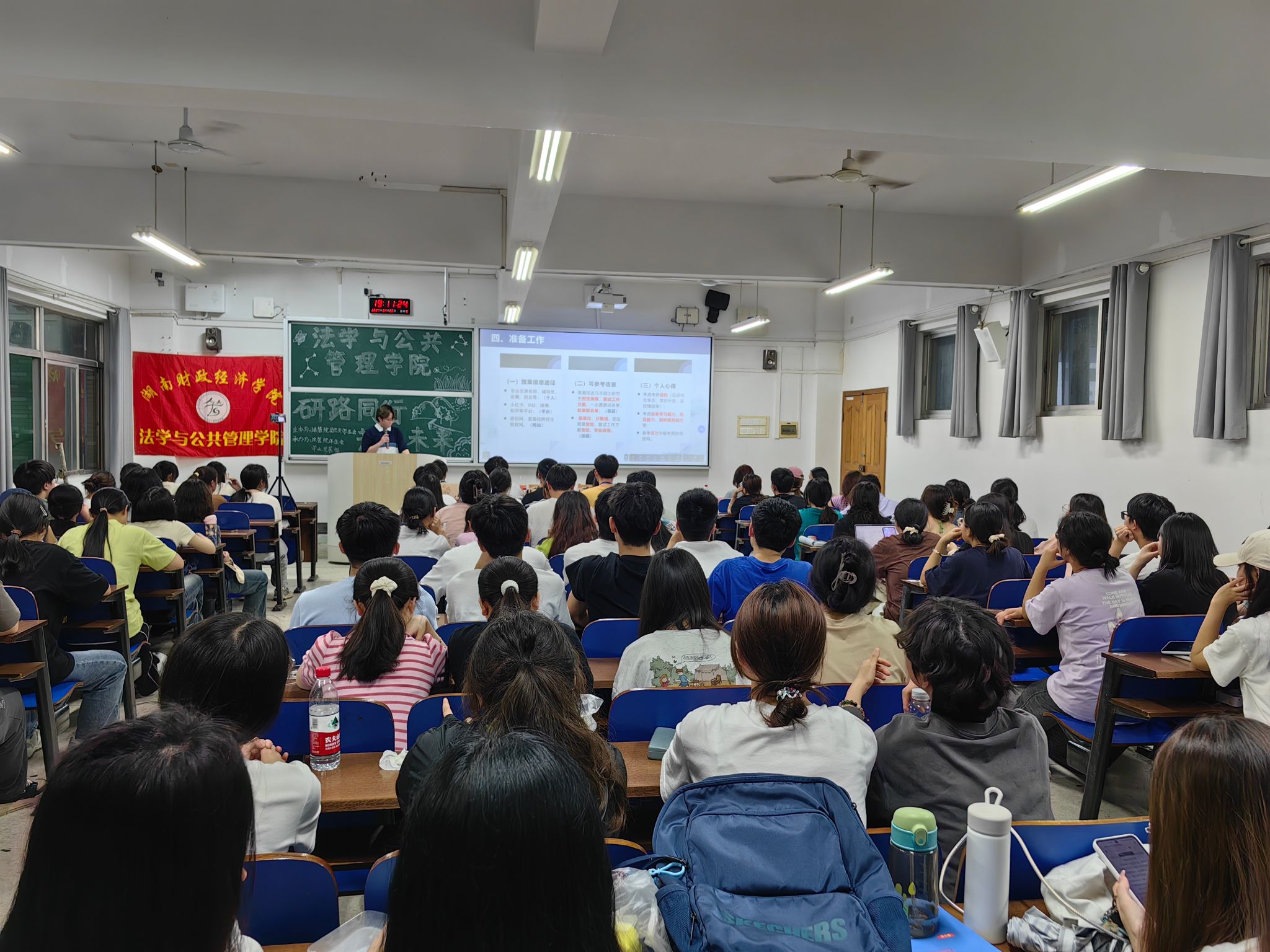 (本网讯)4月26日,法学与公共管理学院在主校区3203教室举办“研路同行,共筑未来”考研交流分享会。团总支书记张伊昌、第二党支部书记何梦丽、团总支学生会主席团成员出席交流会。本次交流会邀请李知育、方高阳、戴骏哲、万钰四位成功上岸的同学,采取线上线下联动的方式为大家进行分享考研经验。80余人参加了此次交流会。