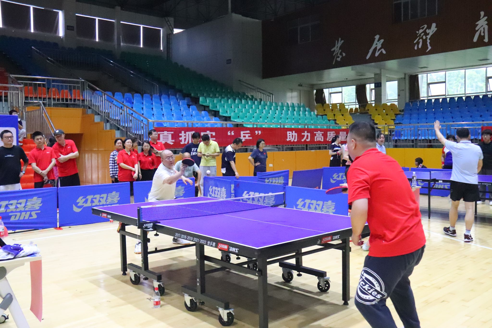 赛场上,参赛选手各种花式炫技将横拍、直拍、削球、扣杀、旋球等技巧表现得淋漓尽致,多回合拉锯的精彩场面不断上演,比分交替上升,整个比赛紧张激烈、扣人心弦,现场洋溢着热闹喜庆的气氛,充分展示了广大教职工顽强、拼搏的体育运动精神。在一旁的观战区,教师们也抑制不住内心的激动,高声为选手们加油打气……小小的乒乓球,“乒”来“乒”去,“乒”出活力,“乓”出友谊!“乒”出健康、“乒”出快乐!