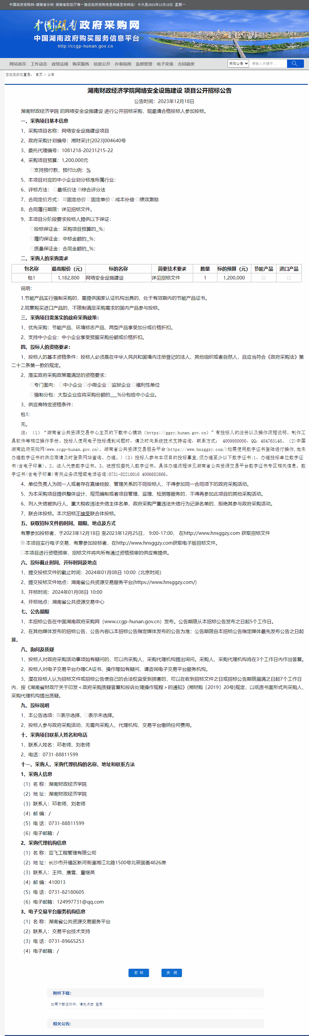 湖南省政府采购网:2026世界杯官网网络安全设施建设项目公开招标公告