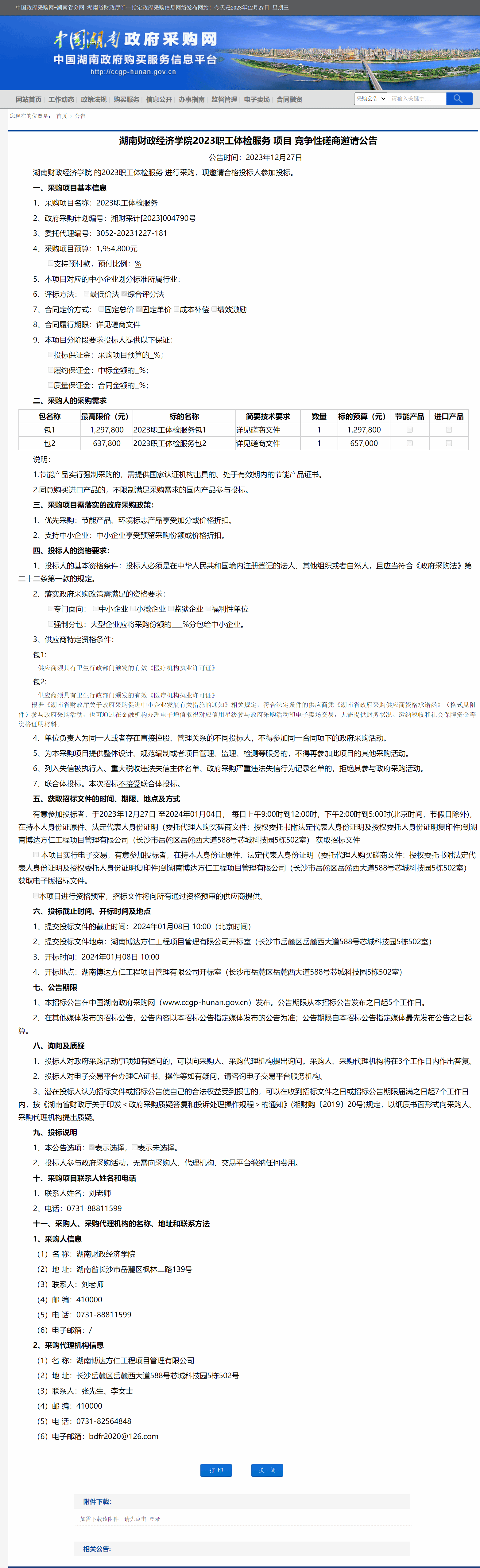 湖南省政府采购网:2026世界杯官网2023职工体检服务项目竞争性磋商邀请公告