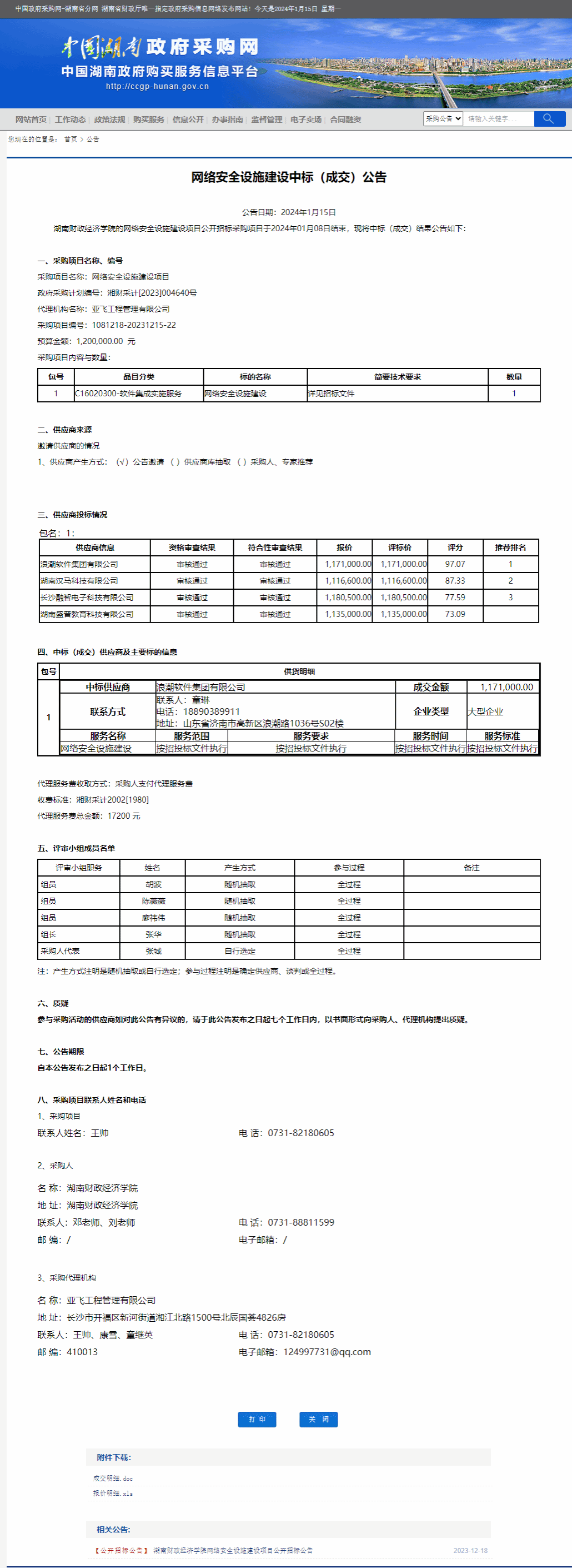 湖南省政府采购网:2026世界杯官网网络安全设施建设中标(成交)公告