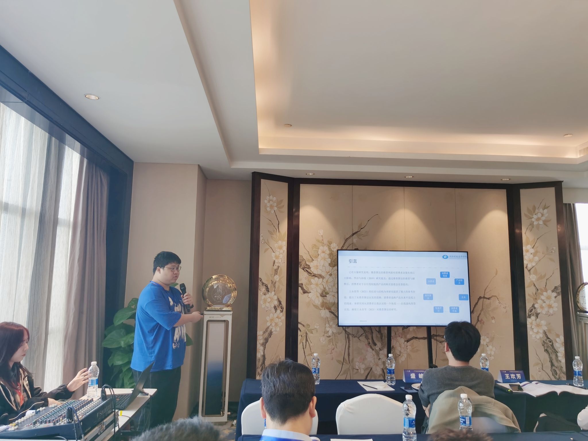 汤落翊同学汇报了论文“自我建构与推荐算法对消费者购买意愿的交互效应研究—兼论中介效应和调节效应”,在汇报过程中,他与点评嘉宾浙江大学知名学者盛峰教授以及湖南工业大学杰出教授王欢芳进行了深入的探讨。两位教授就实验设计过程中的细节提出了宝贵的修改建议,为论文的进一步完善指明了方向。此次会议不仅为参会的师生们提供了丰富的学术研究思路,更在推动相关领域研究发展方面具有重要意义,为未来的学术探索奠定了坚实的基础。