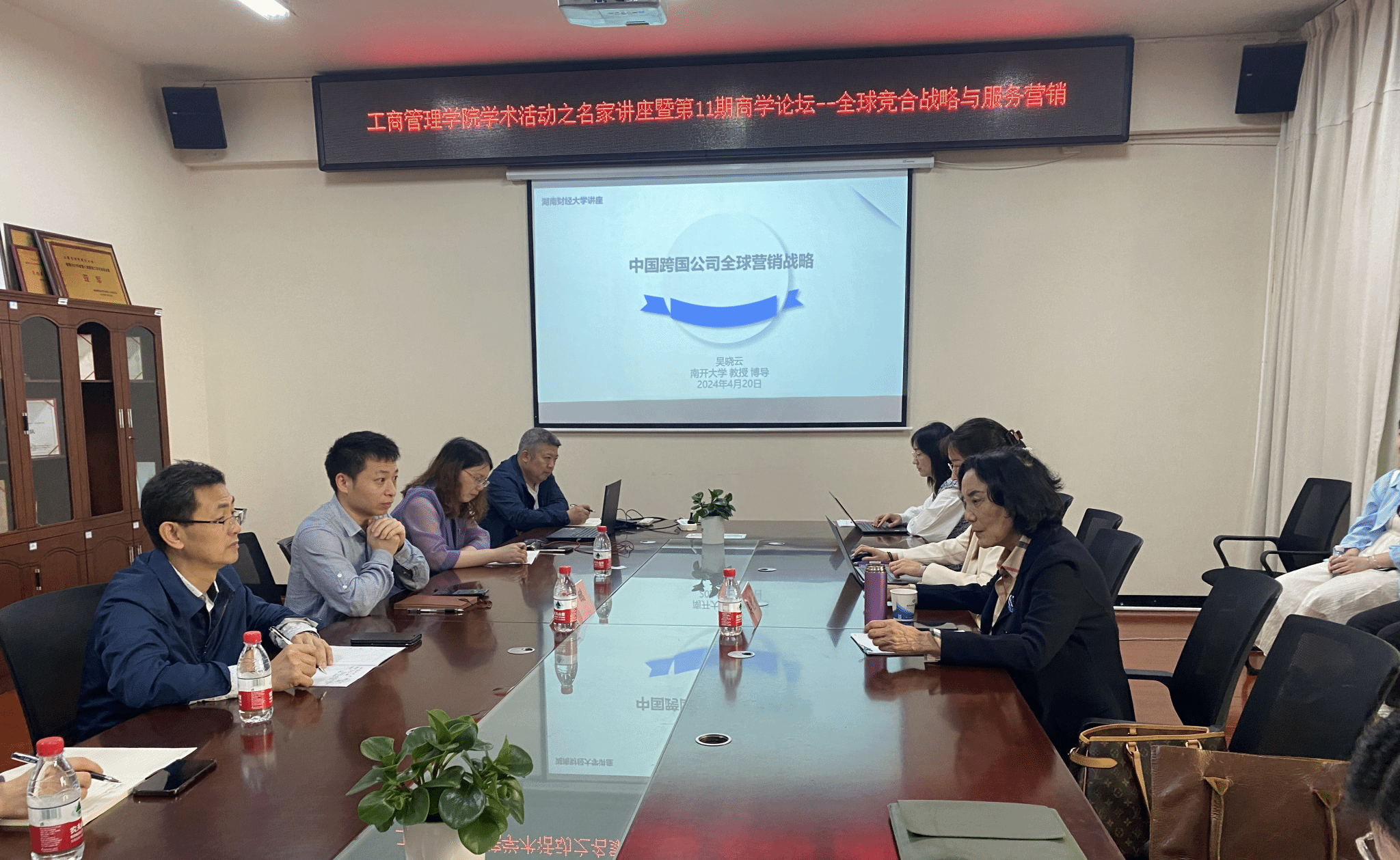 (本网讯)4月20日上午,南开大学商学院吴晓云教授以“全球竞合战略与服务营销”为题,为世界杯官网师生带来了一场精彩讲座。讲座由工商管理学院院长杨鹏主持。工商管理学院市场营销系全体教师,学院全体年轻教师、博士和学生代表参加了本次讲座。