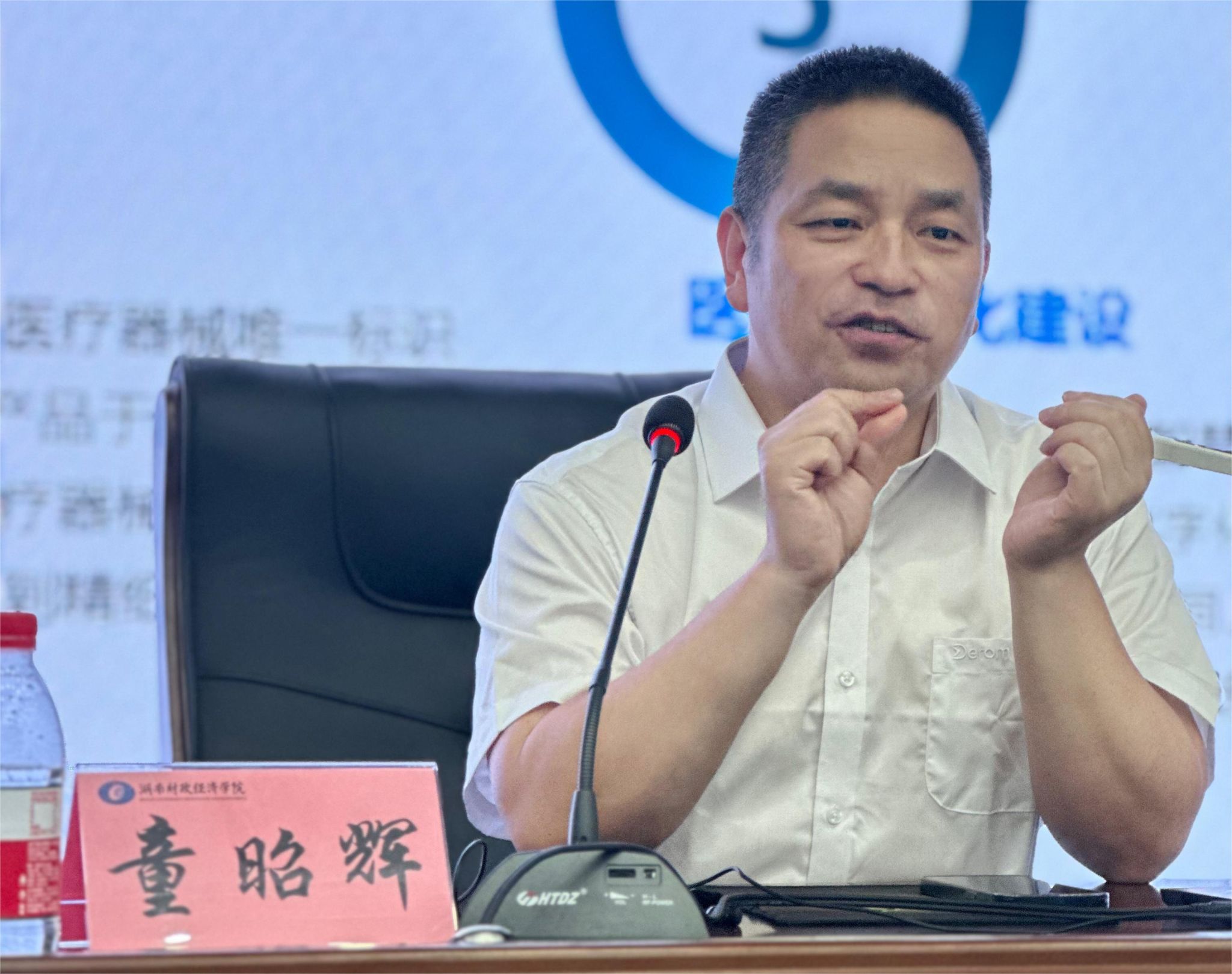 (本网讯)5月8日下午,工商管理学院企业家大讲堂首期在雷锋校区学术报告厅开讲,第一期主讲人是学院实践教学基地-德荣医疗科技股份有限公司SPD事业群总裁童昭辉,他以“医疗耗材院内供应链管理”为主题作分享。讲座由副校长赵鹤平主持,工商管理学院院长杨鹏、科研办主任邹浩及2023级全体学生到场聆听。