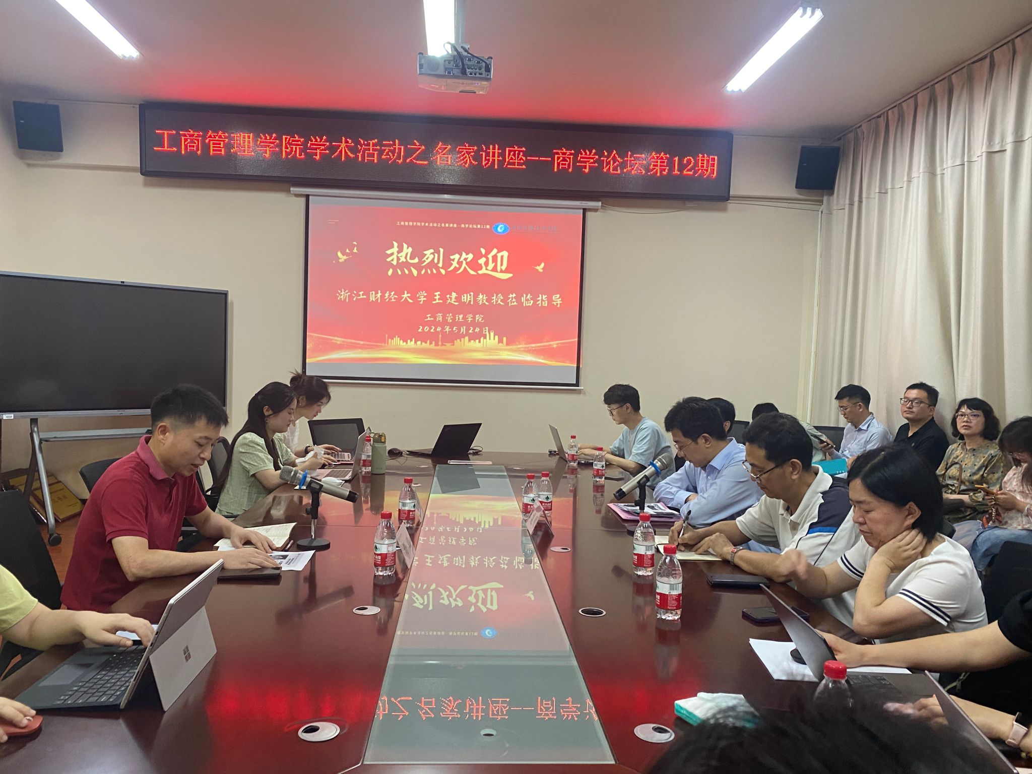 (本网讯)5月24日下午,我院在办公楼414-1会议室举行工商管理学院学术活动之名家讲座--商学论坛第12期工商管理学科高级别课题申报技巧和案例解析讲座。浙江财经大学管理学院教授王建明应邀进行指导。本次讲座由学院院长杨鹏主持,科研处处长李勇辉、学院青年教师及全体博士参加会议。