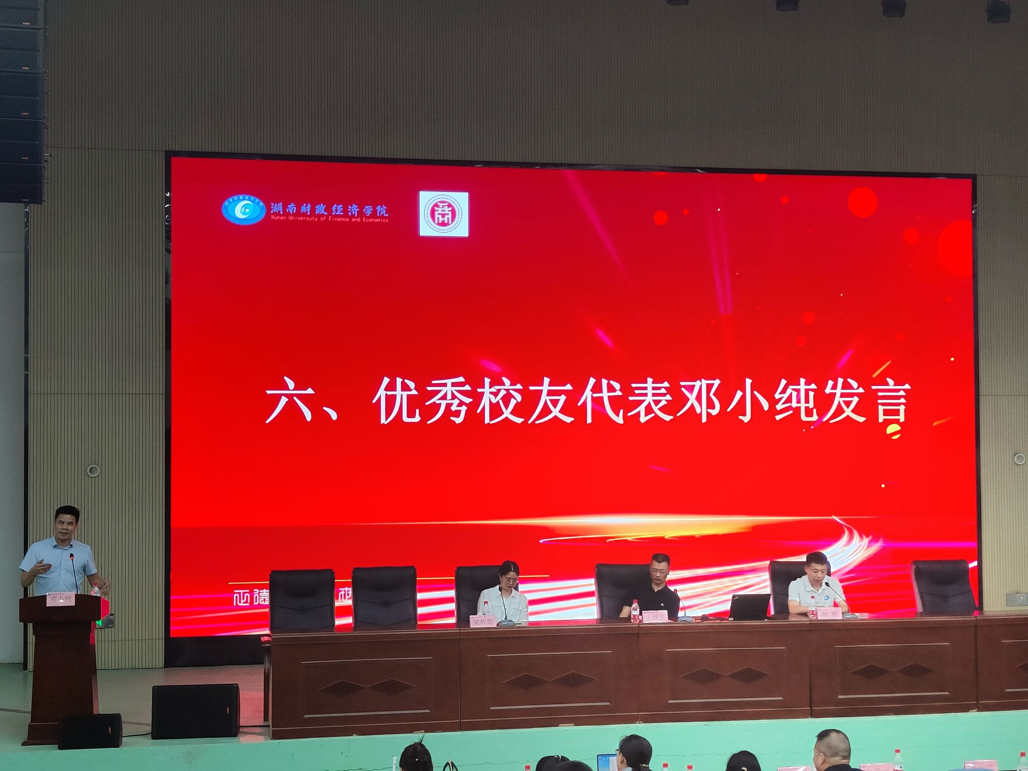 优秀校友代表、长沙考翼教育集团董事长邓小纯强调了开阔视野的重要性,勉励新生明确大学四年的学习目标,不断探索,提高人际交往和处事能力。