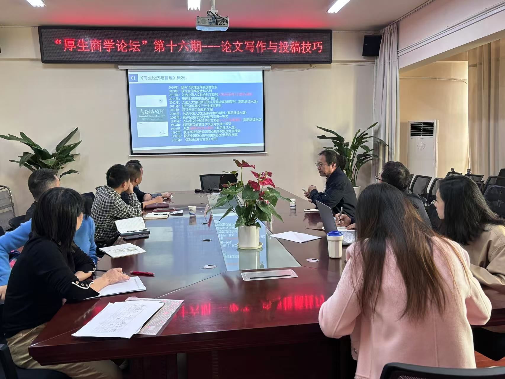 (本网讯)11 月 8 日上午,工商管理学院在本部办公楼414-1会议室举办第十六期商学论坛。浙江工商大学教授郭宝才为我院作专题讲座。讲座由院长杨鹏出席主持,工商管理学院老师出席参加。