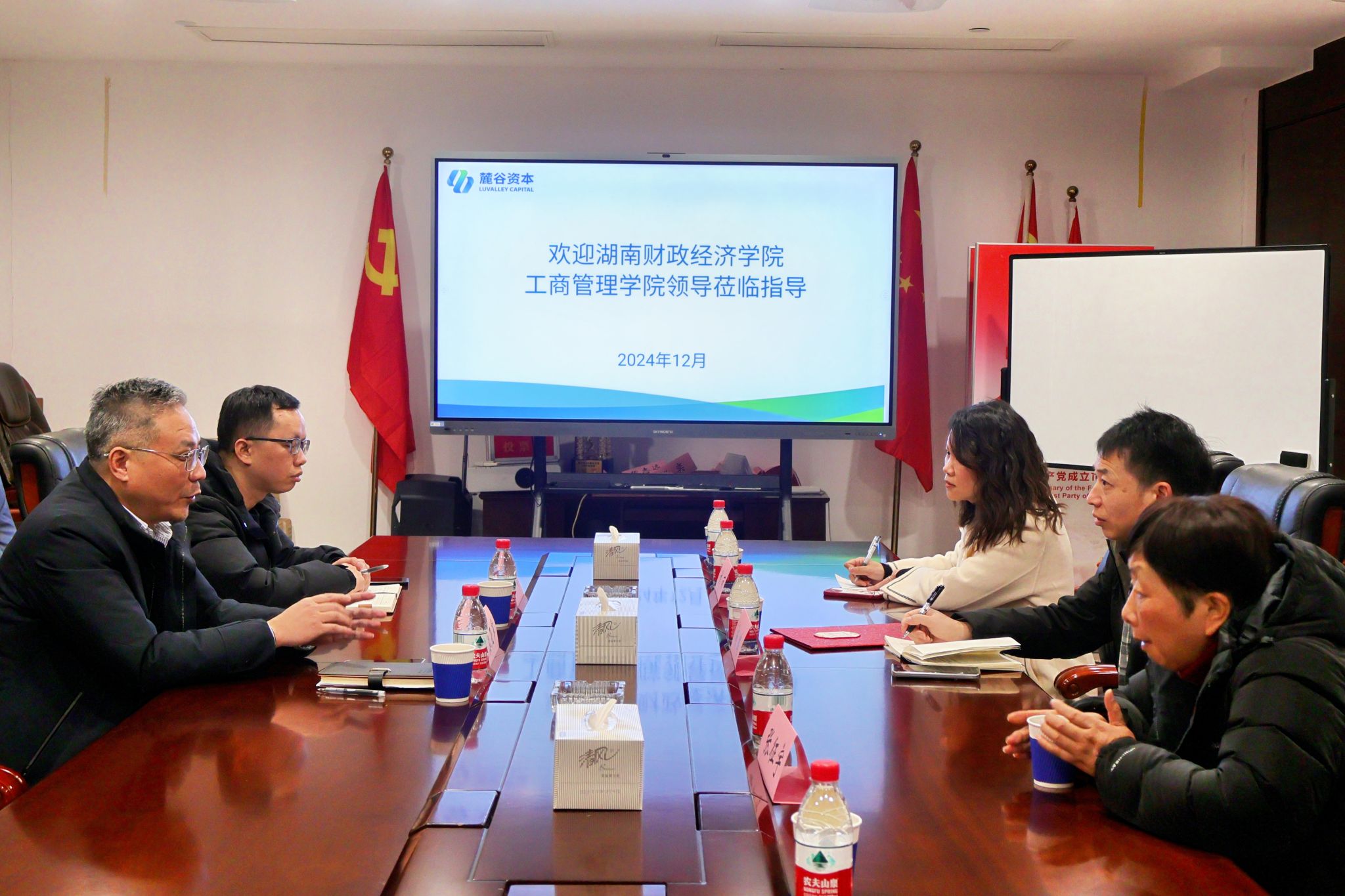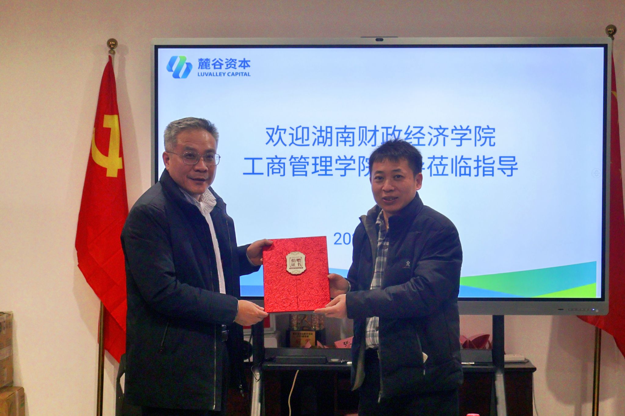 (青年融媒体中心讯)12月19日,工商管理学院院长杨鹏一行赴长沙麓谷资本管理有限公司访企拓岗并访问校友。1990级校友、长沙麓谷资本管理有限公司总经理秦亚军亲切接待杨鹏一行。