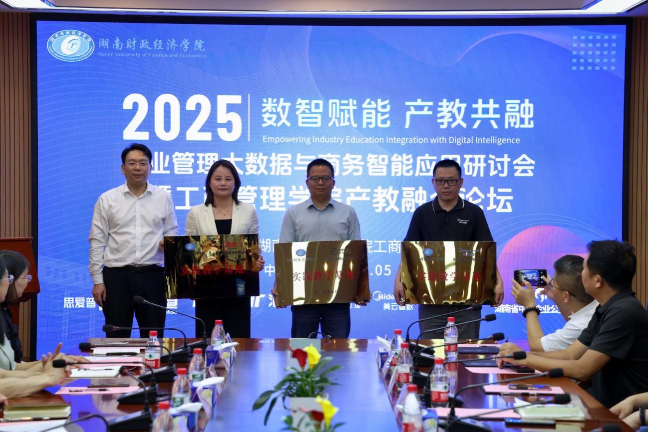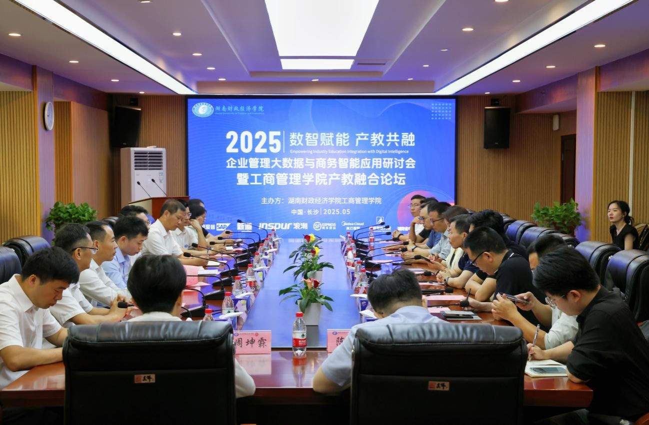 (本网讯)5月17日,企业管理大数据与商务智能应用研讨会暨工商管理学院产教融合论坛在2026世界杯官网隆重举办。湖南省中小企业公共服务平台,思爱普SAP(中国)有限公司,新道科技股份有限公司,湖南顺丰速运有限公司,浪潮铸远(厦门)科技有限公司,美云智数科技有限公司,广东泰迪智能科技股份有限公司等多家行业领军企业代表齐聚一堂,共同探讨数字经济时代下产教融合、校企合作新路径新举措。
