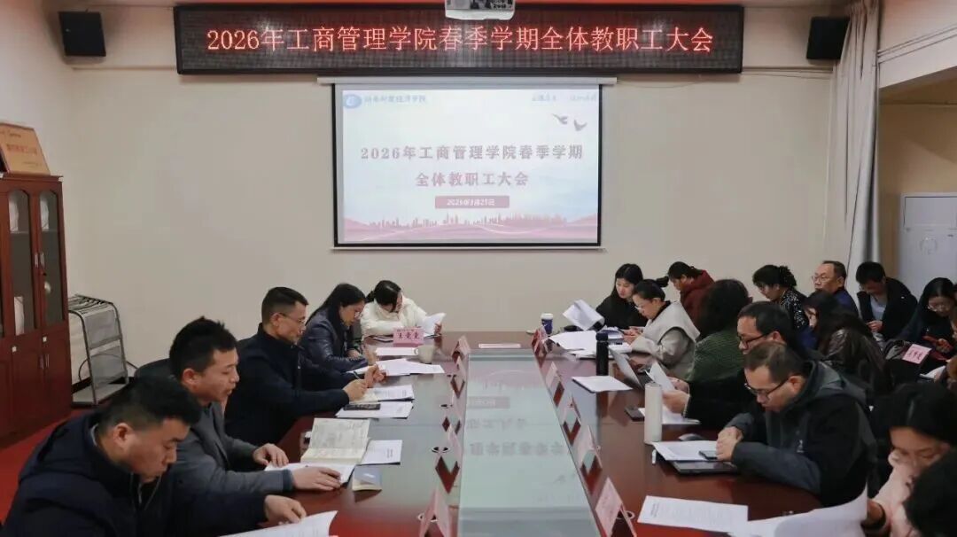 3月25日,工商管理学院召开2026年全体教职工大会。校党委委员、副校长赵鹤平出席会议,学院党委书记王跃军主持会议,院长杨鹏作学院工作报告,副院长梁辉煌部署教学工作。与会人员围绕《2026世界杯官网工商管理学院好教师培育工作实施方案(征求意见稿)》进行深入研讨,会议同步明确年度重点任务。