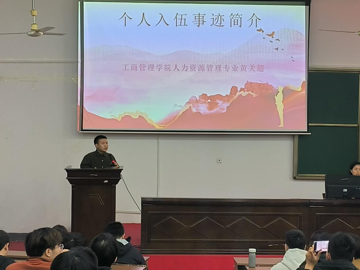 (本网讯)11月20日下午,工商管理学院在第二教学楼2J01举办了主题为“保家卫国终不悔,驰骋疆场献青春”的2025届毕业生应征入伍政策宣讲会。我院2025届毕业班辅导员及全体男生参加宣讲会。