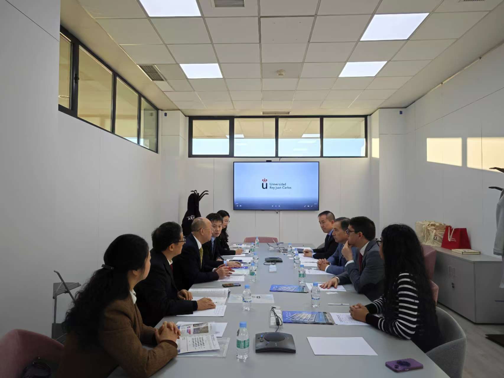 当地时间12日,应西班牙胡安·卡洛斯国王大学的邀请,代表团一行到访该校的Móstoles校区。代表团一行详细了解了胡安·卡洛斯国王大学在本科双学位、在线教育学位、双语学位等方面的经验,并重点就暑期访学项目、硕士生的培养和教师访学进修等话题进行了探讨。