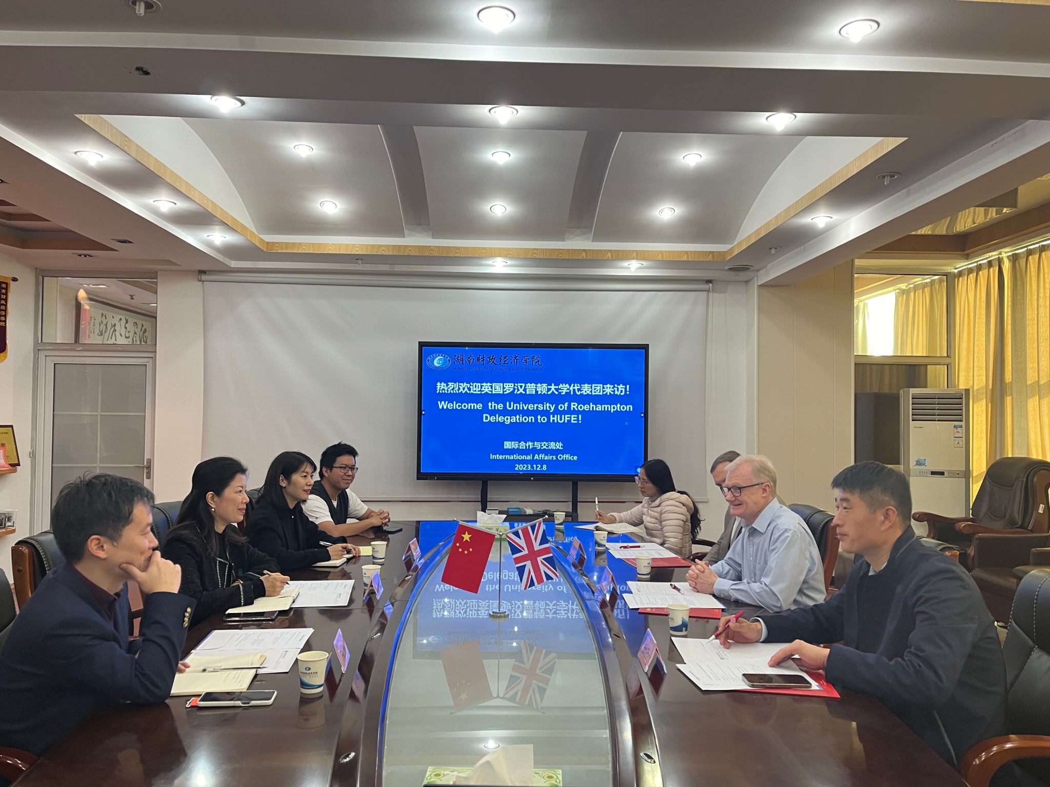 12月8日,英国罗汉普顿大学商法学院本科课程项目负责人Stephen O’Regan教授率团来校访问。厚生国际教育学院直属党支部书记肖平飞、国际合作与交流处副处长傅佳,以及相关负责同志于办公楼830接待并组织会谈。