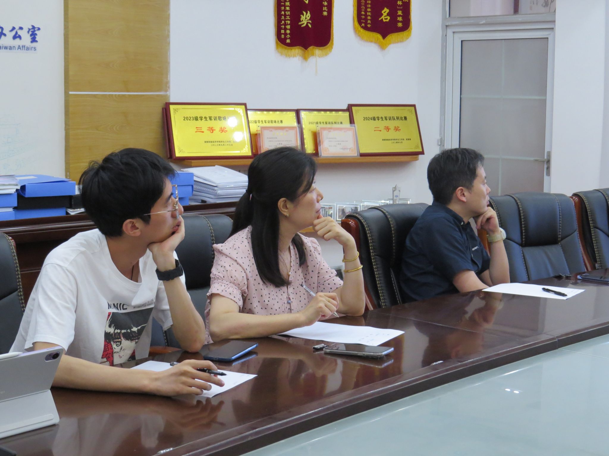 图为评委老师观看小组汇报