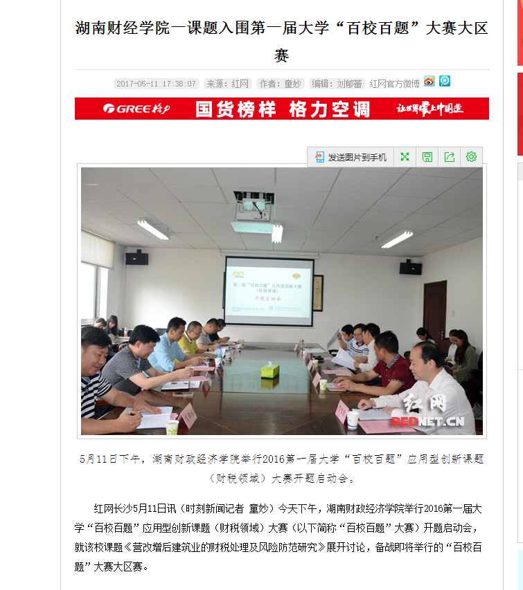 5月11日,红网以《湖南财经学院一课题入围第一届大学“百校百题”大赛大区赛》为题,对世界杯官网参加“百校百题”大赛情况进行了报道。 报道链接:http://qy.rednet.cn/c/2017/05/11/4291236.htm?open_sourc...