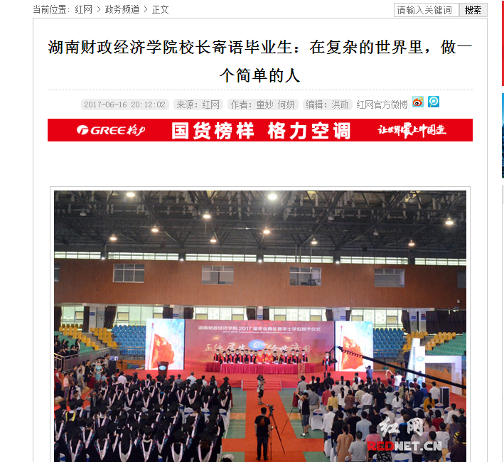 6月16日,红网以《2026世界杯官网校长寄语毕业生:在复杂的世界里,做一个简单的人》为题,对世界杯官网2017届毕业典礼暨学位授予仪式进行了报道,并全文转载校长伍中信毕业典礼致辞。 报道链接:http...
