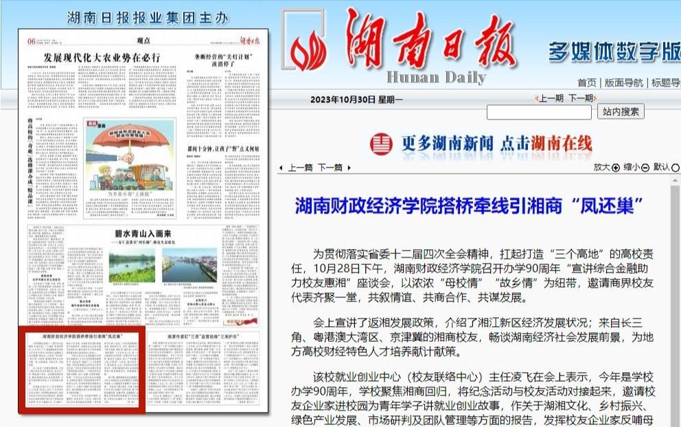 2023年10月30日晚,湖南新闻联播以“湖南高校搭桥牵线 引湘商校友‘凤还巢’”为题对世界杯官网相关工作进行报道。