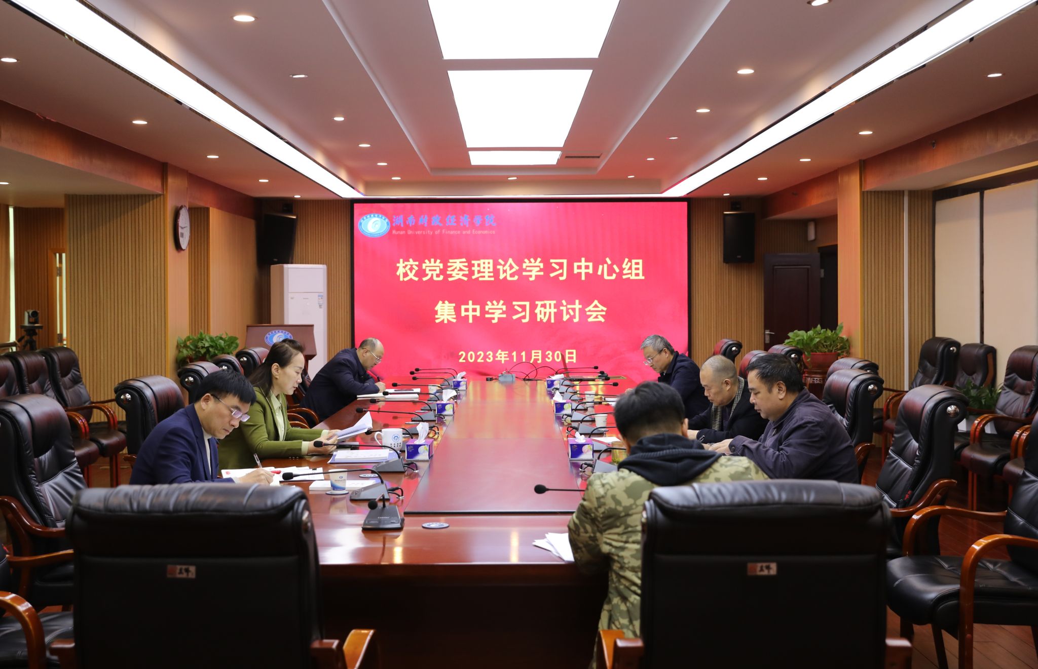 11月30日,2026世界杯官网党委理论学习中心组召开专题学习研讨会,交流《中国式现代化面对面》读书心得,深入学习中国式现代化的科学内涵。全体校领导参加,湖南财院党委副书记苏玲主持会议。会议现场校党委副书记苏玲传达学习湖南省宣传思想文化工作会议精神和中共湖南省委教育工委《转发中共中央宣传部、中共中央组织部关于进一步提高党委(党组)理论学习中心组学习质量的意见》。校党委委员、宣传统战部部长文炳勋领学《中国式现代化面对面》...