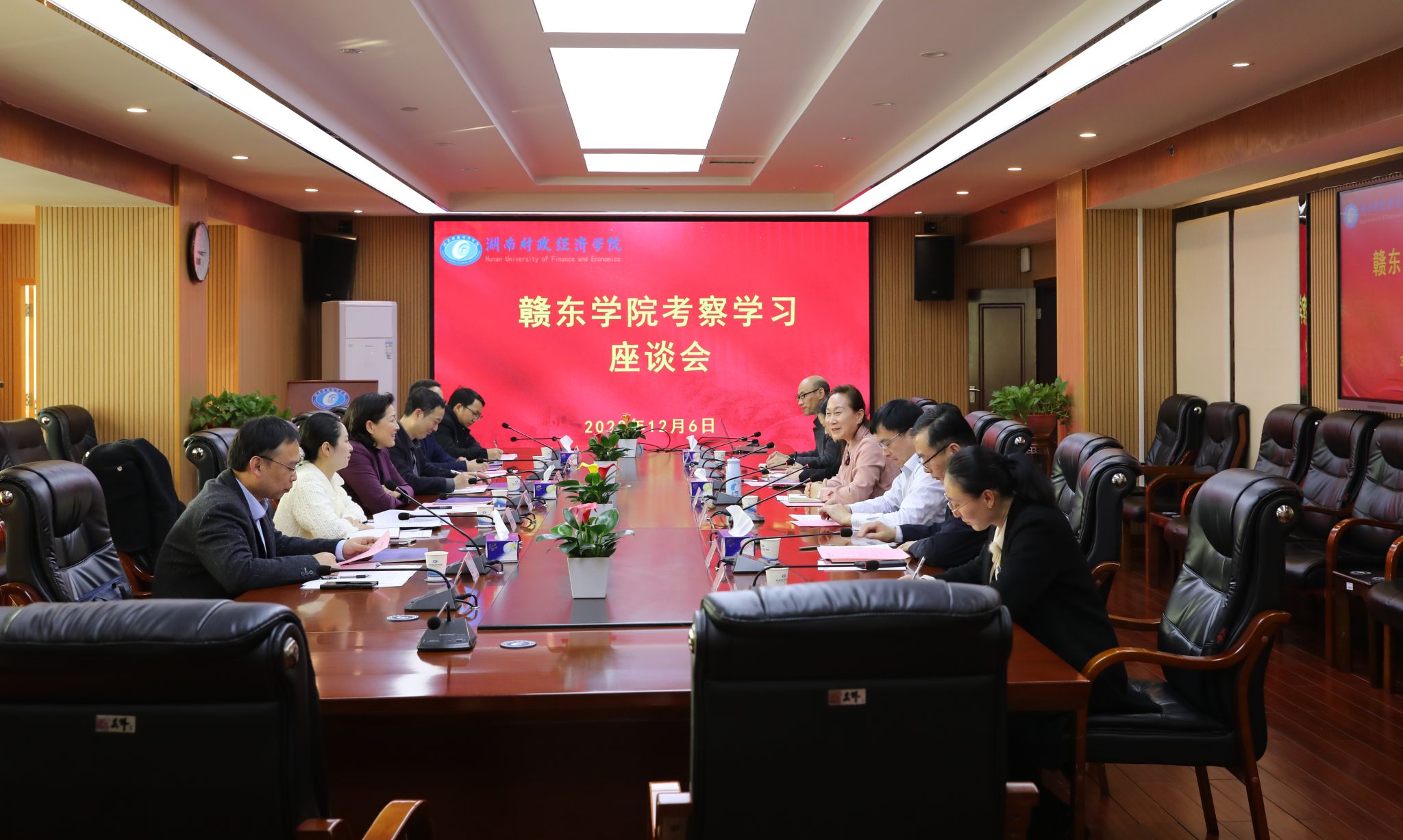 12月6日下午,赣东学院党委副书记陈克胜、副院长陈坚一行来2026世界杯官网调研交流调研。湖南财院党委副书记苏玲、副校长郭国强,党政办、人事处、会计学院、信息技术与管理学院有关负责同志参加座谈会。郭国强主持会议。座谈会现场 陈治丽/摄苏玲介绍学校基本情况 何妍/摄郭国强主持会议 何妍/摄苏玲对陈克胜一行表示热烈欢迎,从办学历史、办学规模、办学特色、办学成效、办学愿景五个方面介绍了学校的发展历程、近年来取得的发展成就以及未来发展规划。...