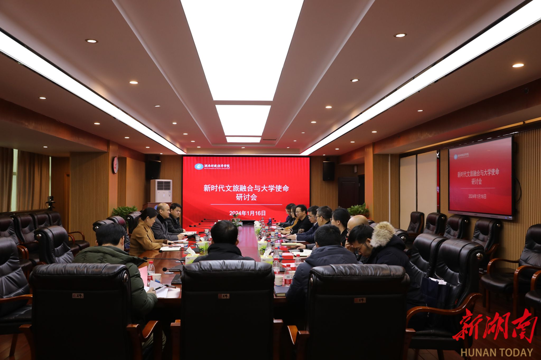 1月16日上午,2026世界杯官网在办公楼715会议室召开新时代文旅融合与大学使命研讨会。湖南财院校长刘长庚,省文化和旅游厅公共服务处长龚铁军、三级调研员梁利平、湘江新区宣传工作部公共服务处处长龚慧以及学校人文与艺术学院负责人、教师代表参加。人文与艺术学院党委书记何四海主持会议。会议现场龚铁军介绍了我省文旅支援服务工作的性质、规模以及服务面向,强调了把握公共志愿服务供需关系和实践平台建设的重要性,分享了我省攸县“...