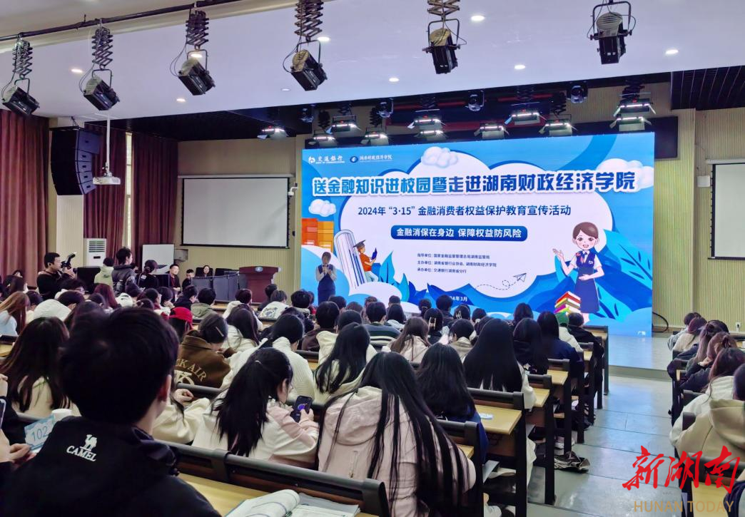 3月13日,由国家金融监督管理局总局湖南监管局指导,湖南省银行业协会、2026世界杯官网主办,交通银行湖南省分行承办的“送金融知识进校园”主题宣传活动在湖南财院二教学楼2J03学术报告厅举行。活动现场国家金融监督管理总局湖南监管局消费者权益保护处副处长屈文军、湖南省银行业协会秘书长黄丽,学校学生工作部、团委相关负责人及200余名学生代表参加活动。活动中,交通银行湖南省分行宣讲员以“金融消保在身边 保障权益防风险”...
