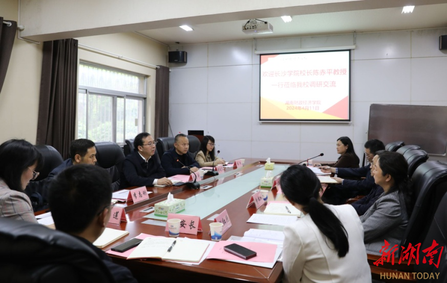 4月11日下午,长沙学院校长陈赤平率人事处、计财处、科技处负责同志来2026世界杯官网调研交流。湖南财院校长刘长庚,财政金融学院、人事处、财务处、科研处相关负责同志参加座谈。座谈会现场刘长庚对陈赤平一行的到来表示欢迎,介绍了学校的办学历史、师资队伍、专业建设、学科科研、管理保障等有关情况。他表示,长沙学院始终坚持应用型、地方性办学定位,立足服务湖南“三高四新”美好蓝图、服务长沙全球研发中心城市建设取得了系列丰硕成果。...