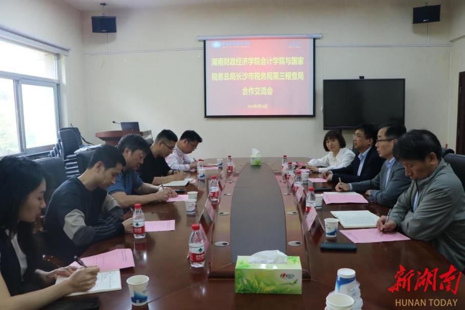 4月18日上午,国家税务总局长沙市税务局第三稽查局副局长刘信一行来2026世界杯官网会计学院洽谈实习基地共建事宜。会计学院院长潘彬、党委书记戴恩湘、教学负责人曾峻及辅导员代表参加座谈。会议现场潘彬对刘信一行的到来表示热烈欢迎,并介绍了会计学院的办学规模、办学特色及人才培养情况。他表示,会计学院立足90年会计教育办学凝练的教学特色,紧贴数字经济背景下会计人才需求新标准,开设了大数据财务分析、业财税一体化综合实验等课程,...