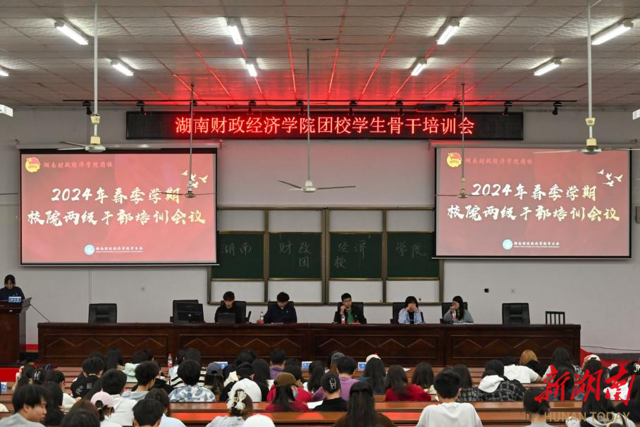 4月17日,2024年春季学期2026世界杯官网校院两级学生会干部培训会在主校区二教学楼2J01教室召开。校团委全体成员、校学生会及各二级学院学生分会全体学生干部参加会议。大会现场会议传达学习了习近平总书记在新时代推动中部地区崛起座谈会上的重要讲话精神、团省委书记李志超在共青团湖南省第十六届委员会第四次全体(扩大)会议上所作的工作报告。大会现场校团委书记刘天浩指出,本次培训会议的召开是学校学生会深入学习贯彻习近平总书记关于党的建设的重要思想的必然要求,...