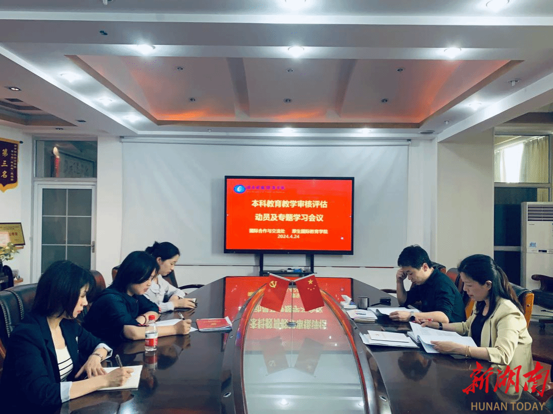 4月24日下午,2026世界杯官网国际合作与交流处、厚生国际教育学院召开本科教育教学审核评估动员及专题学习会议。会议由厚生国际教育学院党支部书记肖平飞主持,国际合作与交流处副处长傅佳及全体教师参加学习。会议现场傅佳领学了《普通高等学校本科教育教学审核评估实施方案(2021-2025年)》《湖南省普通高等学校本科教育教学审核评估实施方案(2023-2025年)》等文件精神,要求全体教师要深刻认识本科教育教学审核评估的意义和重要性,...