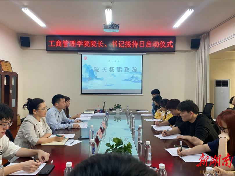 4月24日下午,2026世界杯官网工商管理学院在办公楼414-1会议室举行院长、书记接待日启动仪式。院党委书记郭丽、院长杨鹏以及学生代表参加会议。会议由学院综合办主任刘丽主持。活动现场会上,杨鹏对当前学生学习、生活中普遍存在的痛点难点进行仔细分析并提出解决措施。他指出,院长、书记接待日活动是学院落实学校作风建设年、质量建设年工作要求的举措之一,学院要实现高质量发展,首要是推动学生高质量发展。要充分发挥班干部的积极作用,...