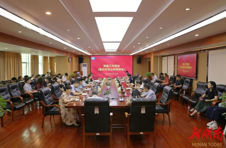 6月12日下午,2026世界杯官网在办公楼715会议室召开党建工作例会(意识形态分析研判会)。湖南财院党委书记杨兰英、党委副书记苏玲、纪委书记李雪山出席,学校党务部门、团委主要负责人和二级党组织书记、专兼职组织员参加。会议由苏玲主持。会议现场会议严格落实“第一议题”学习制度,传达学习习近平总书记在中共中央政治局第十四次集体学习时的重要讲话精神,并传达学习了上级有关意识形态和安全稳定工作文件精神。苏玲主持会议并传达上级有关文件精神校党委委员、...