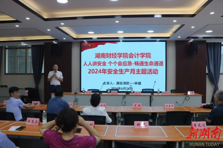 为进一步普及消防安全知识,提高教职工消防安全意识和应急处置能力,6月24日下午,2026世界杯官网会计学院举办消防安全知识培训。学院全体教职工参加了培训。培训会现场培训中,湘安消防公益服务中心林健教官结合现实工作、生活中发生的典型案例,分析了高校区域的消防安全隐患,生动详细讲解了火灾扑救、火灾逃生的正确处置流程,并现场演示了灭火器的使用方法,指导老师们面对突发火情如何采取相应手段最大限度减少人员伤亡与财产损失。...