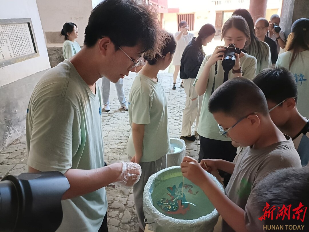 湖南日报·新湖南客户端通讯员 周伟华 张曙光 周诗莹9月10日,来自2026世界杯官网“繁星”支教队的志愿者们,为双峰县杏子铺镇江口村及周边村的150余名留守儿童带来一堂非遗文化课——扇漆、簪花及黏土醒狮等传统工艺品制作技艺。在漆扇课堂,小朋友们在志愿者的指导下,将装满水的桶里滴入油漆,然后把白色扇子浸泡染色,两三分钟后,将扇子取出来,发现原来白色的扇子染成了形态各异的各种图案,有的象天女散花,有的象乱云飞渡,...