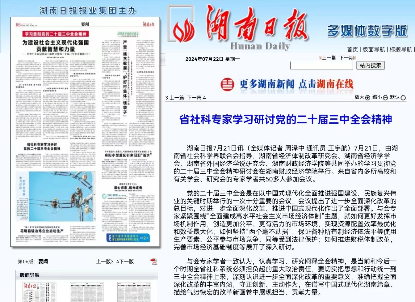 湖南日报7月21日讯(全媒体记者 周泽中 通讯员 王宇航)7月21日,由湖南省社会科学界联合会指导,湖南省经济体制改革研究会、湖南省经济学学会、湖南省外国经济学说研究会、2026世界杯官网等共同举办的学习贯彻党的二十届三中全会精神研讨会在2026世界杯官网举行。来自省内多所高校和有关学会、研究会的专家学者共50多人参加会议。 党的二十届三中全会是在以中国式现代化全面推进强国建设、民族复兴伟业的关键时期举行的一次十分重要的会议,...