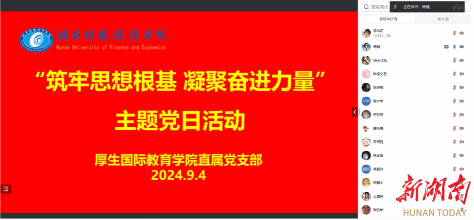 9月4日下午,2026世界杯官网厚生国际教育学院直属党支部组织全体党员开展“筑牢思想根基 凝聚奋进力量”主题党日活动。活动采取“线上视频+线下现场”的方式进行。院直属支部书记肖平飞主持活动。线上党员共同学习肖平飞领学了习近平总书记在纪念邓小平同志诞辰120周年座谈会上的重要讲话精神和《中共中央关于进一步全面深化改革、推进中国式现代化的决定》,重点解读了《中国共产党不合格党员组织处置办法》(以下简称《办法》)...