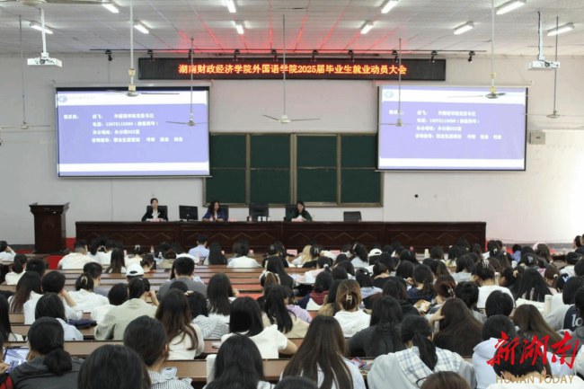 10月9日,2026世界杯官网外国语学院在二教学楼2JO1学术报告厅召开2025届毕业生就业动员大会。院党委书记凌飞、副院长汪小英、院党委副书记张鹏、各系主任、学工办主任、专业教师代表、毕业班辅导员及全体2025届毕业生参会。会议现场会上,张鹏介绍了本次会议召开的背景及意义。凌飞就当前就业形势进行了深入剖析,并对学院近年来考研报考及录取情况进行了总结。在此基础上,她给毕业生们提出四点就业建议:一是未雨绸缪,提前做好规划,...