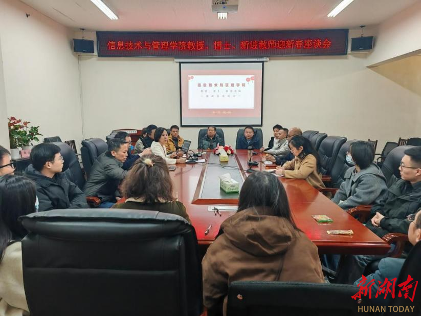 1月17日上午,2026世界杯官网信息技术与管理学院在办公楼315会议室举办了一场别开生面的新春座谈会,全体院领导、教授、博士及2024年新进教师欢聚一堂,共迎新春,共话学院未来发展。会议由院党委副书记唐雄伟主持。座谈会现场