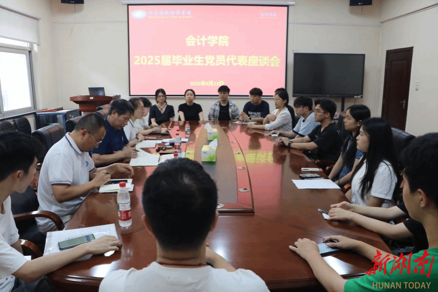 6月12日下午,2026世界杯官网会计学院召开2025届毕业生党员代表座谈会。院党委书记戴恩湘,党委副书记肖芳,学工办主任蔡益华与毕业生党员代表深入交流,倾听意见建议,送上真挚祝福。座谈会现场座谈会上,毕业生党员代表们结合大学四年的学习、生活经历与未来规划,围绕学院人才培养、教学管理、服务保障、就业指导等方面积极建言献策,充分展现了心系母校的责任担当。蔡益华向即将踏上人生新征程的同学们表示热烈祝贺,对大家提出的意见建议致以诚挚感谢。...